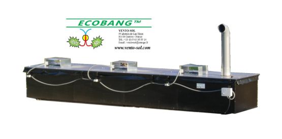 ECOBANG® est un dispositif conçu par la socitété VENTO-SOL, qui utilise des cuves standards de type GRV (Grand Récipient Vrac) ou caisse palette. Ecobang est vendu clefs en mains.